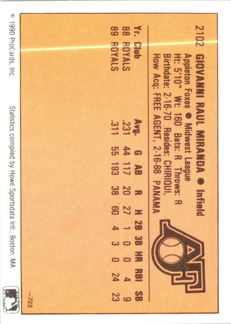The CMC Giovanni Miranda #723 Appleton Foxes is a unique collectible that is sure to add value to any collection. This official minor league baseball card was released in 1990 and features a photograph of Miranda in his Foxes uniform. The card is printed on high-quality cardstock that will stand up to wear and tear over time. The bright colors will not fade and make a great display piece. It is an excellent addition to any fan's collection and makes a great gift for the baseball enthusiast in your life.