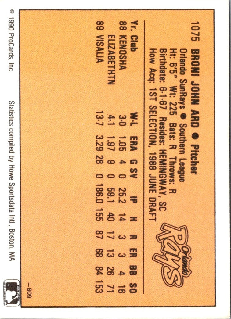 This 1990 CMC Johnny Ard #809 Orlando Sun Rays card is the perfect addition to any card collection! Featuring a sharp and vibrant design, this card captures the classic look of the 90s. It showcases Johnny Ard in his iconic pose and includes his full name and team logo. This card is a must-have for any collector of vintage baseball cards and is a great way to commemorate one of the most beloved players of the era. Get your hands on this piece of history before it's gone!