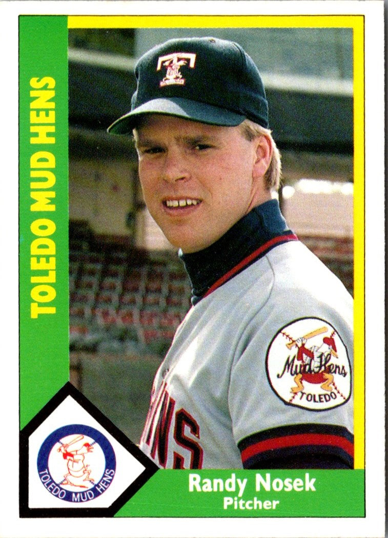 This 1990 CMC Randy Nosek #383 Toledo Mud Hens card is a great addition to any baseball card collection! Featuring Nosek in his classic Mud Hens uniform, this card is a fantastic representation of his time in baseball. The card is in excellent condition, with sharp corners and a vivid image of the player. This card is sure to be a hit with any collector who appreciates the great players of the past! Add this classic card to your collection today!