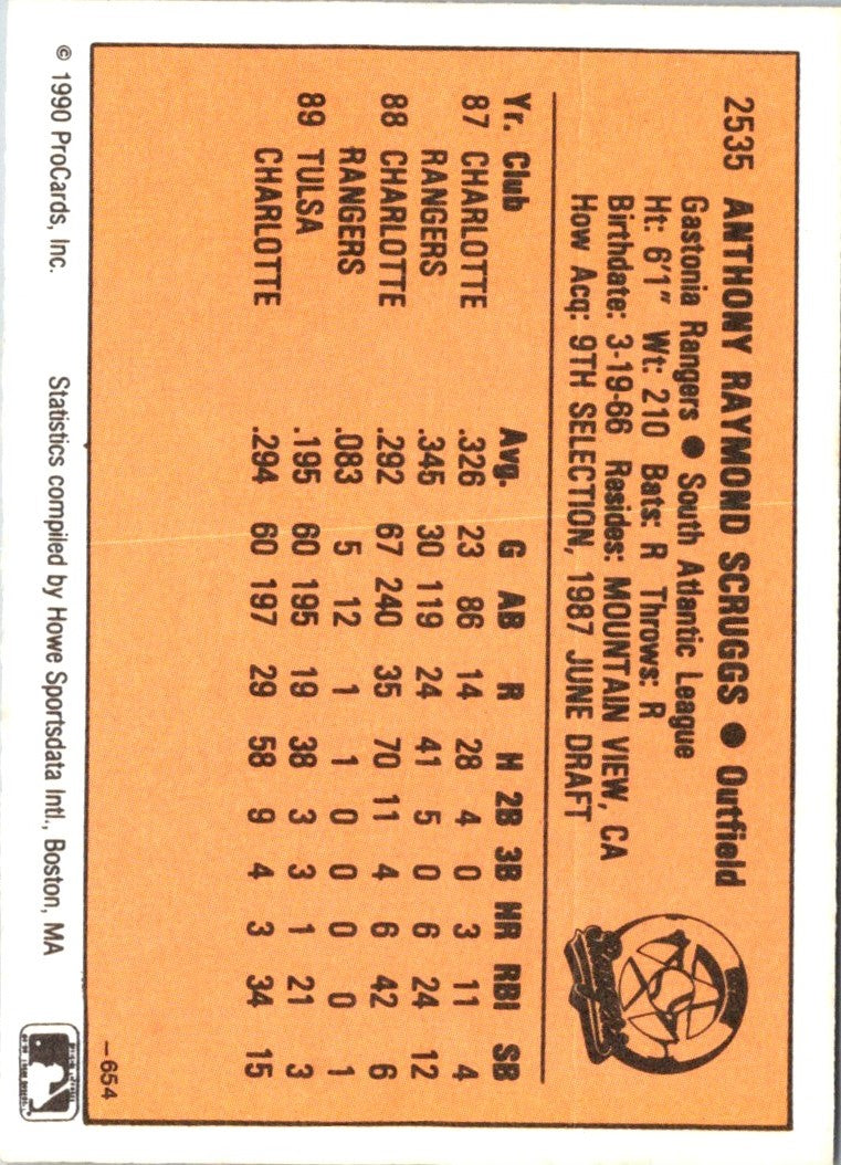 This 1990 CMC Tony Scruggs #654Gastonia Rangers baseball card is a great collector's item and a must-have for any serious collector. Featuring an action shot of Scruggs in his Gastonia Rangers uniform, this card is a great way to commemorate his time with the team. The card is in excellent condition and pictures the star player in full color. With high-quality craftsmanship and a glossy finish, this card is sure to look great in any collection. So don't wait, grab your 1990 CMC Tony Scruggs #654Gastonia Rangers baseball card today!