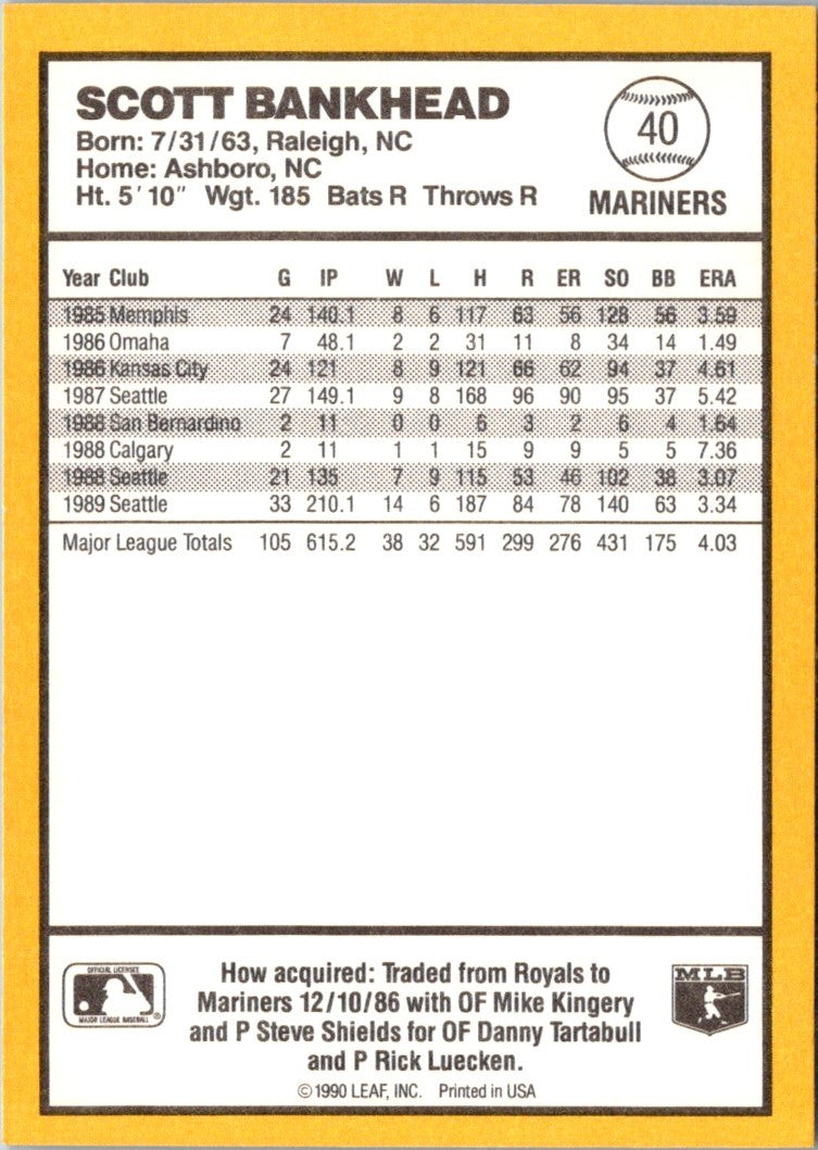Description: 1990 Donruss Best of the AL Scott Bankhead #40