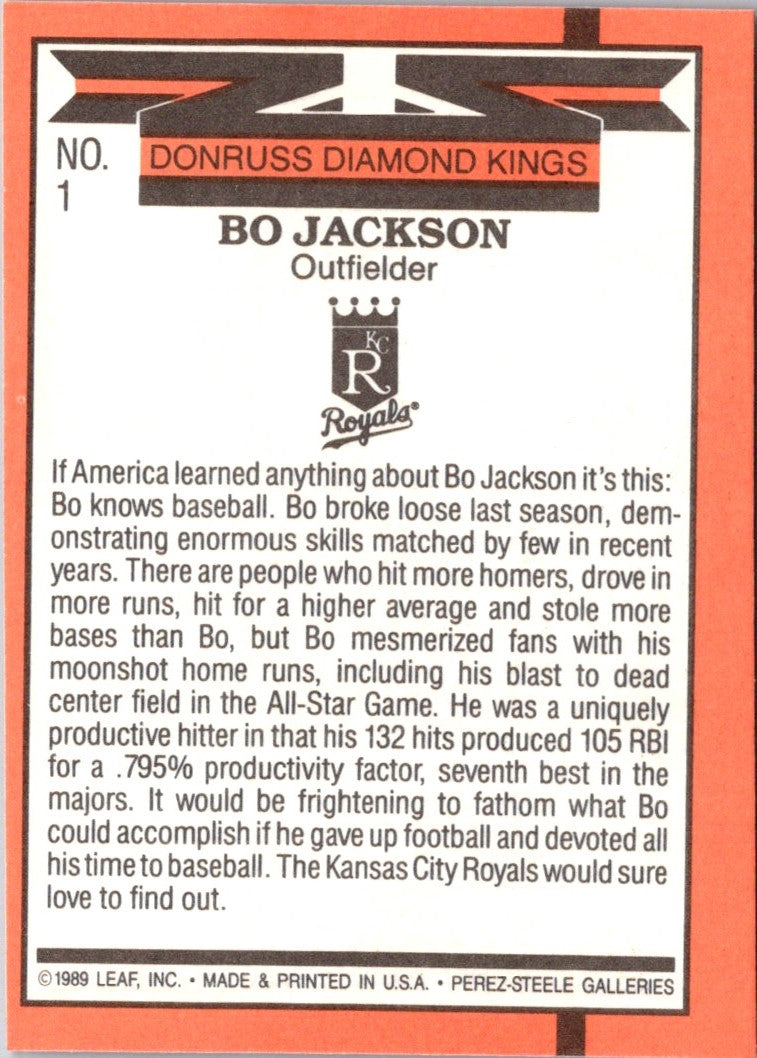 Description: 1990 Donruss Super Diamond Kings Bo Jackson #1