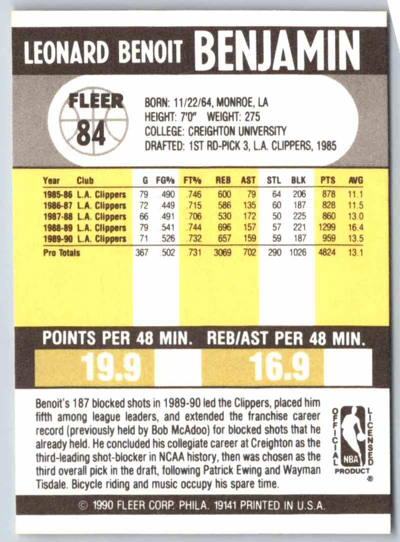 1990 Fleer Benoit Benjamin #84