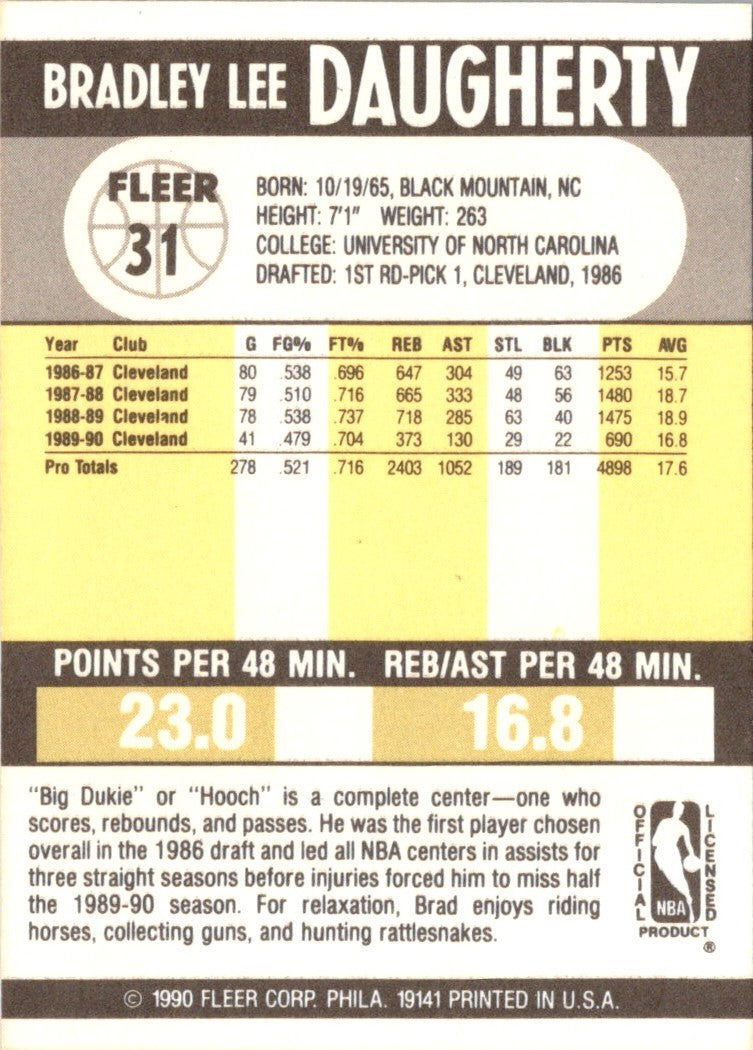 Description: 1990 Fleer Brad Daugherty #31