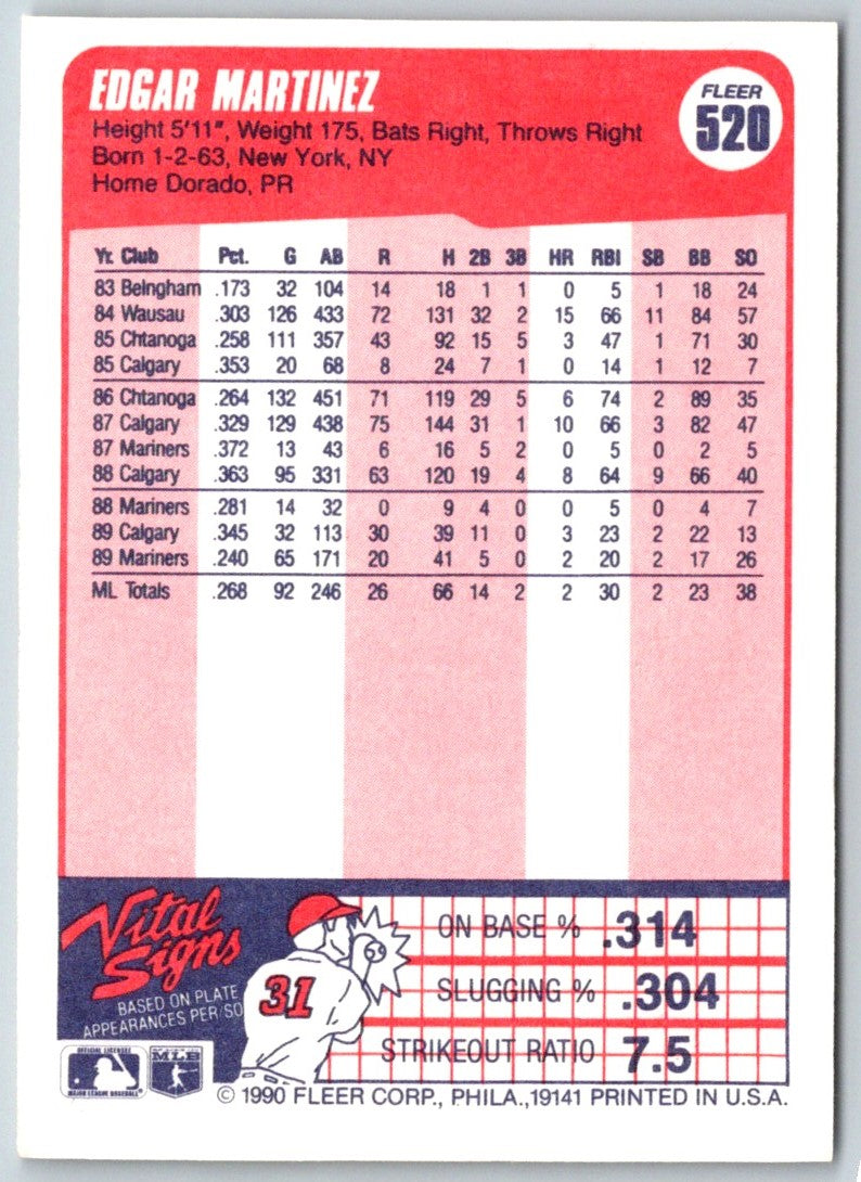 1990 Fleer Edgar Martinez #520