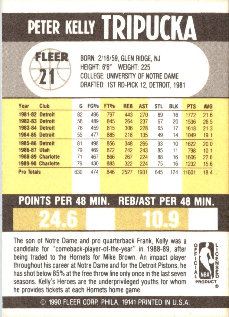 Description: 1990 Fleer Kelly Tripucka #21