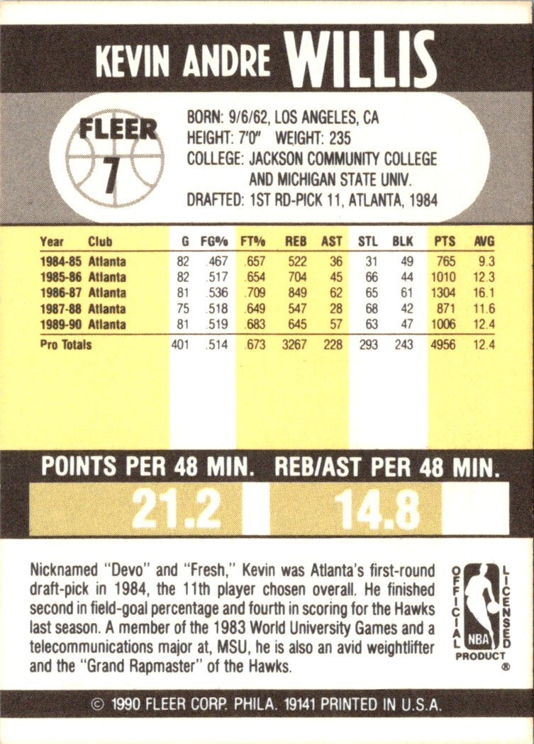 Description: 1990 Fleer Kevin Willis #7