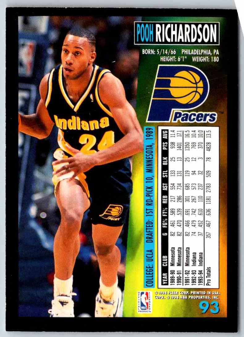 This 1990 Fleer Pooh Richardson #93 card is a must-have for any basketball card collector! Featuring a beautiful image of the former Minnesota Timberwolves point guard and NBA All-Star, this card is sure to bring some serious value to your collection. It's also in great condition, with no creasing or fading, so you can be sure you're getting an excellent addition to your collection! Don't miss out on this classic piece of basketball history!