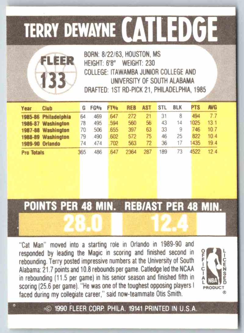This 1990 Fleer Terry Catledge #133 is an essential item for any basketball collector. Boasting a spectacular design, this card features a large full-color portrait of the player, complete with an action shot and a detailed biography on the back. The glossy finish and vibrant colors make this card a stunning addition to any collection. An amazing piece of memorabilia, this card is sure to become a prized part of your collection. Add the 1990 Fleer Terry Catledge #133 to your collection today!
