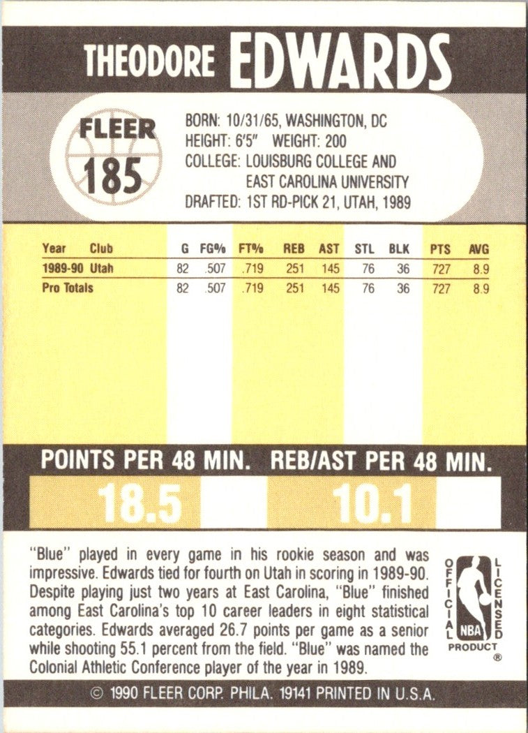 Description: 1990 Fleer Theodore Edwards #185 Rookie