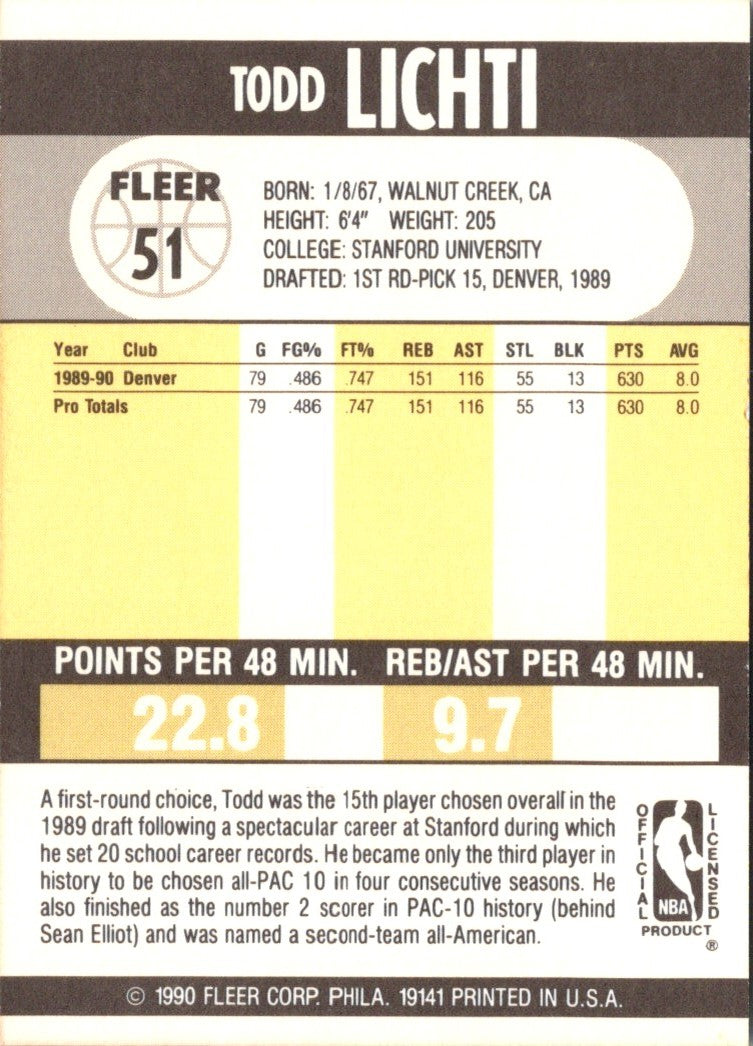Description: 1990 Fleer Todd Lichti #51 Rookie