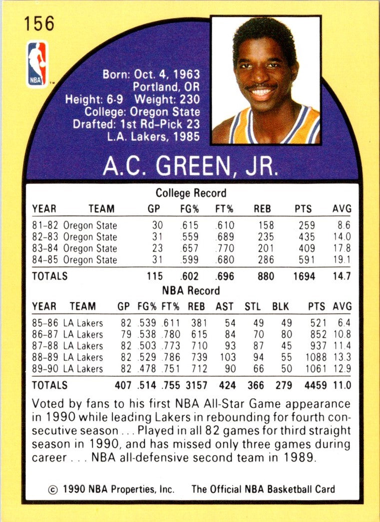 Description: 1990 Hoops A.C. Green #156