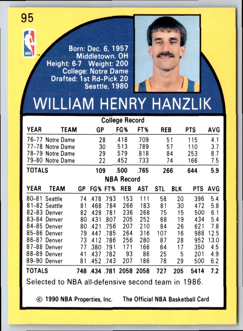 1990 Hoops Bill Hanzlik #95