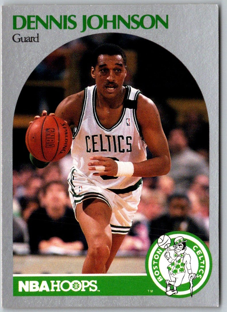 This 1990 Hoops Dennis Johnson #41 Boston Celtics card is a must-have for any Celtics fan! Featuring a high-quality photographic image of the legendary Hall of Fame guard, this card is a great way to commemorate one of the greatest players in Celtics history. With an iconic design, this card is perfect for any basketball card collection. Add this card to your collection and honor the legacy of Dennis Johnson!