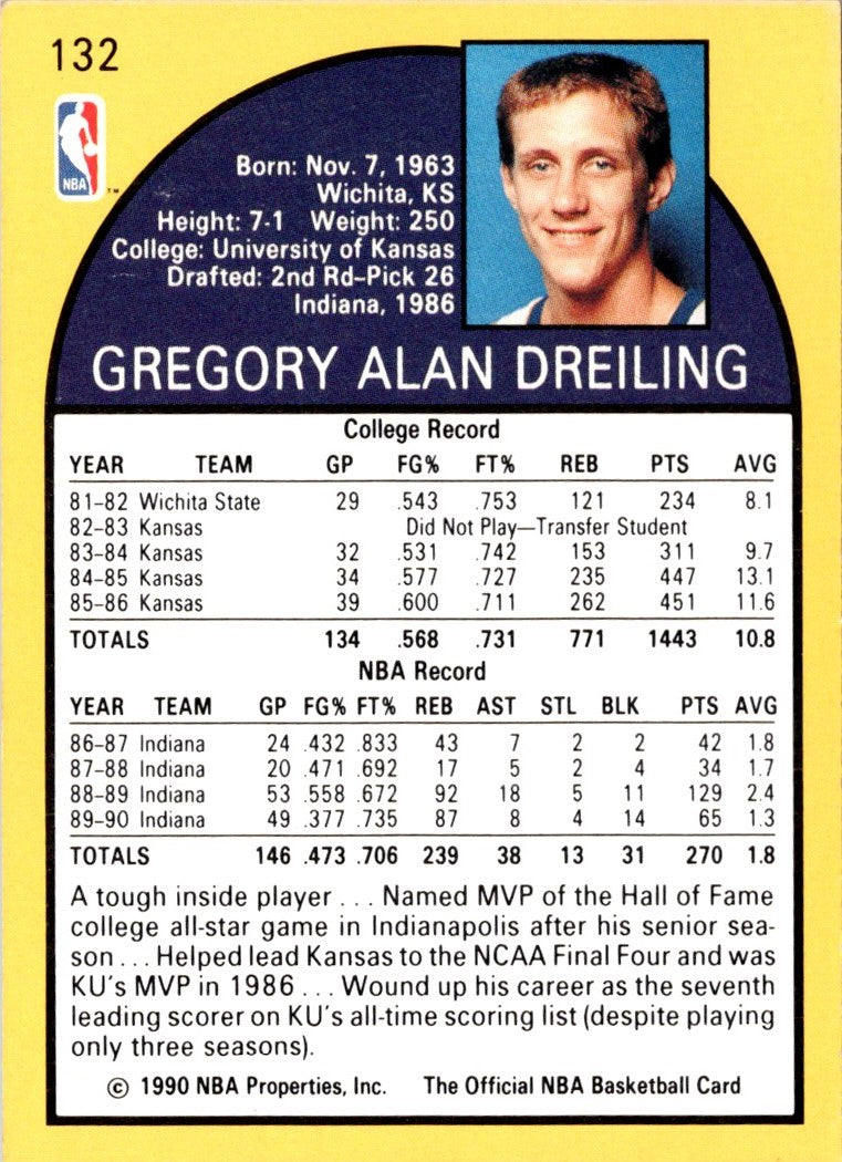 Description: 1990 Hoops Greg Dreiling #132 Rookie