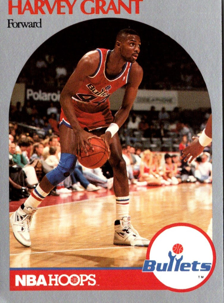 This 1990 Hoops Harvey Grant #297 Washington Bullets card is a must-have for any basketball fan's collection. The card features a sharp and vibrant image of Harvey Grant in action on the court, with a bright red, white, and blue team logo alongside it. The card captures the energy and passion of one of the NBA's most exciting players in the 1990s. Add this card to your collection today and commemorate one of the NBA's brightest stars.