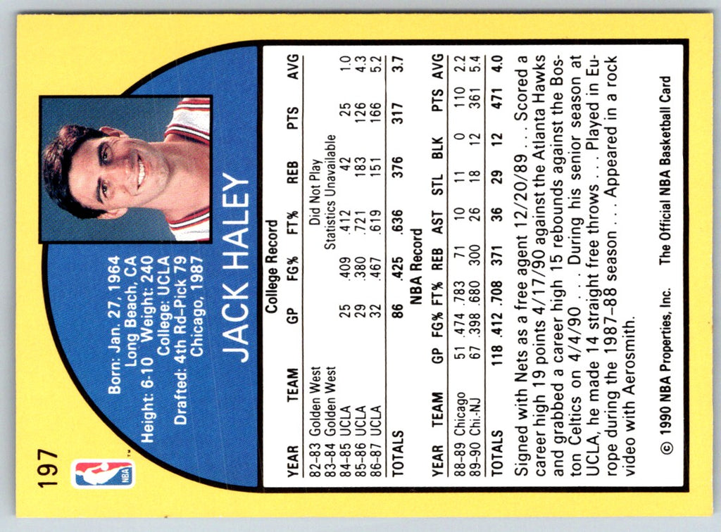 The 1990 Hoops Jack Haley #197 New Jersey Nets card is a great addition to any sports card collection. Featuring a full-color photo of Jack Haley in his Nets uniform, this card is sure to be a hit with any basketball fan. The back of the card provides a detailed biography of Jack Haley's impressive career, including his All-Star selection in 1990. This card is in great condition and is sure to be a lasting keepsake. Add this card to your collection today and honor Jack Haley's outstanding career!