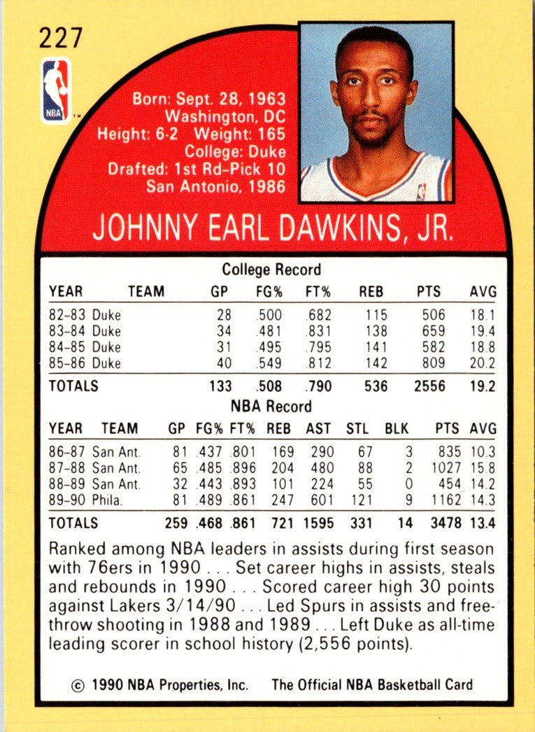 Description: 1990 Hoops Johnny Dawkins #227
