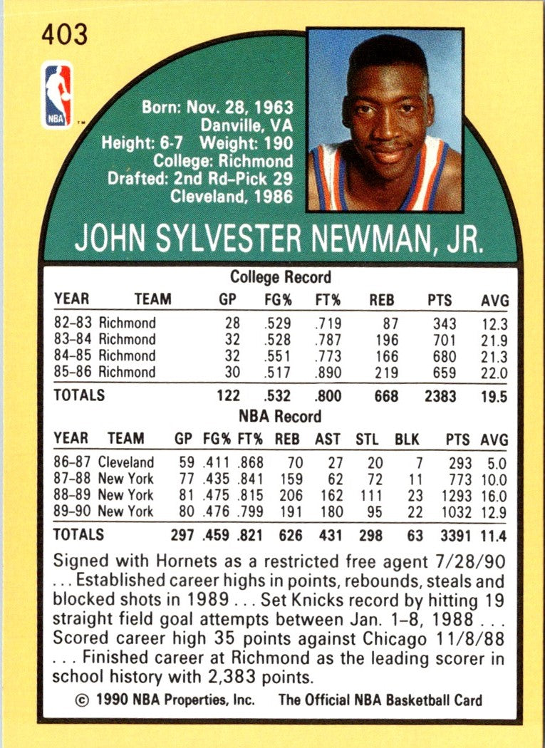 Description: 1990 Hoops Johnny Newman #403