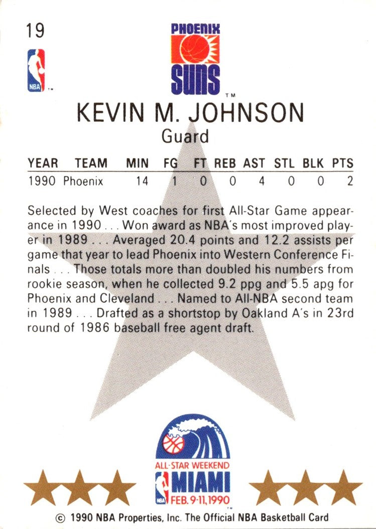 This 1990 Hoops Kevin Johnson #19 Phoenix Suns card is a must-have for basketball memorabilia collectors. Featuring a vibrant photo of Johnson mid-air, ready to dunk, this card is sure to add some serious style to any collection. With a sleek black, orange, and white color scheme, the card is the perfect way to commemorate one of the most iconic players in NBA history. Whether you're looking to add to your existing collection, or just starting a new one, this card is an absolute must-have.