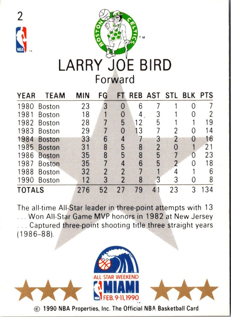This 1990 Hoops Larry Bird #2 card is a must-have for any Boston Celtics fan! Featuring the legendary Hall of Famer in his classic Celtics uniform, this card is sure to be a prized addition to any collection. The card includes Bird's full stats from the 1990 season, making it a great reminder of one of the greatest basketball players of all time. Add this card to your collection today and celebrate the career of Larry Bird!
