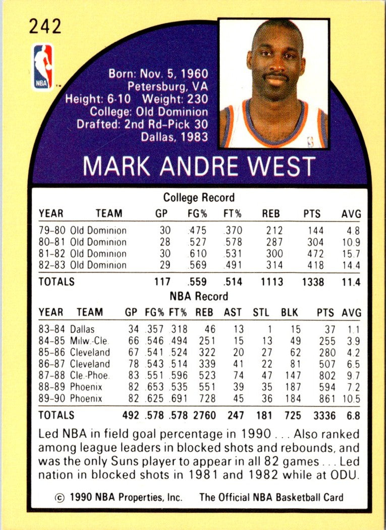 Description: 1990 Hoops Mark West #242