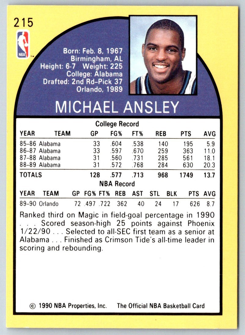 This 1990 Hoops Michael Ansley #215 Orlando Magic card is a must-have for any basketball card enthusiast! Featuring a bright, vibrant design, this card is sure to stand out in any collection. The card depicts a powerful action shot of Michael Ansley in his Orlando Magic uniform, ready to show off his skills on the court. The back of the card showcases a brief biography of Michael Ansley, along with his career highlights and stats. Add this card to your collection and show your support for one of the NBA's greatest players!