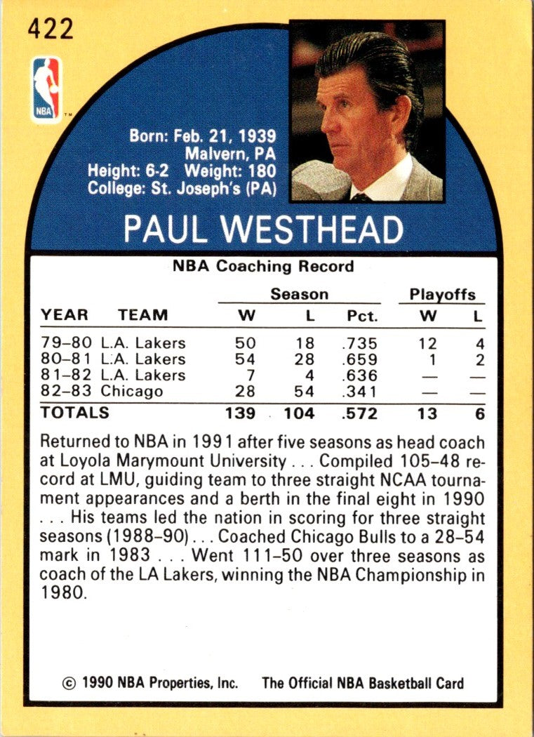 Description: 1990 Hoops Paul Westhead #422