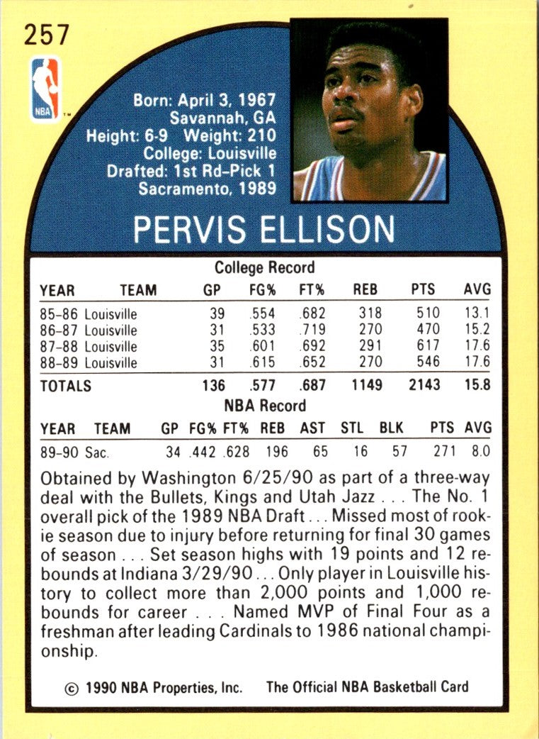 Description: 1990 Hoops Pervis Ellison #257 Rookie