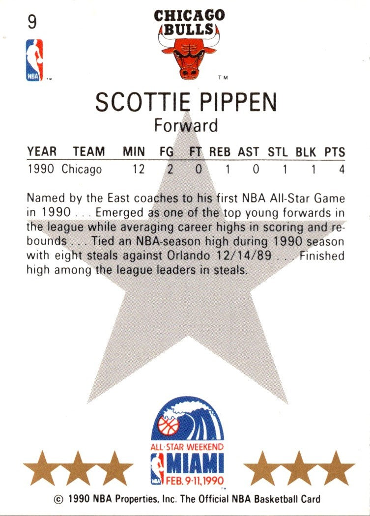 This 1990 Hoops Scottie Pippen #9 Chicago Bulls card is a must-have for any serious collector. Featuring vibrant colors and sharp corners, this card is in near-mint condition and is sure to be a centerpiece of any collection. Showcase your love for this Hall of Fame player and the Windy City with this stunning piece of memorabilia. Don't miss out on this opportunity to add this legendary card to your collection!