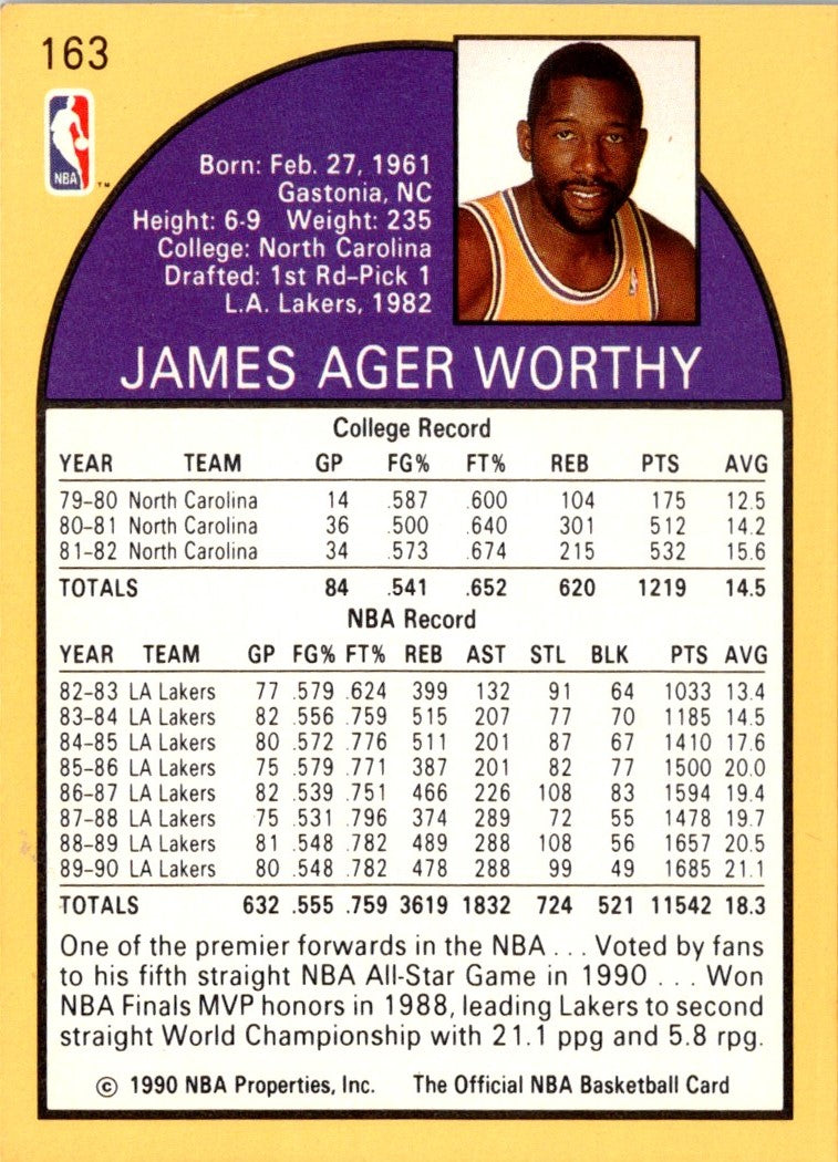 Description: 1990 Hoops Team Night Los Angeles Lakers James Worthy #NNO