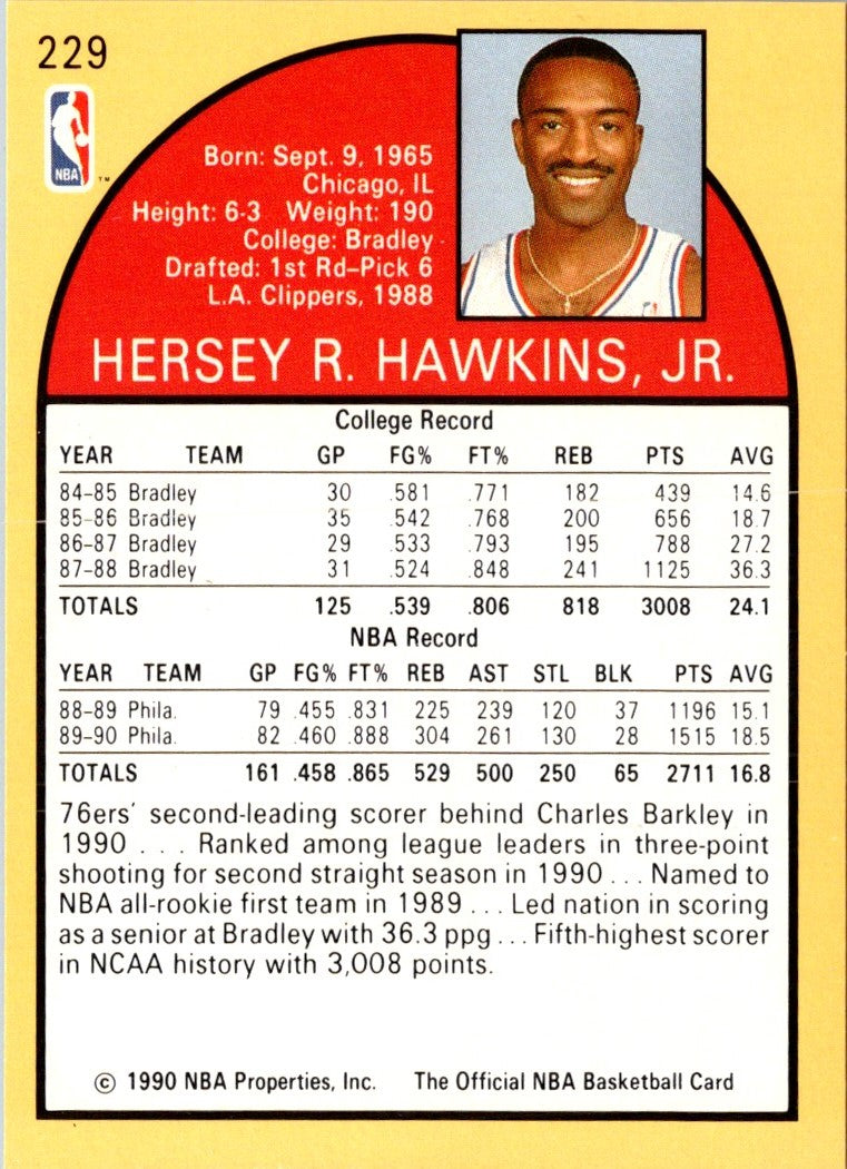 Description: 1990 Hoops Team Night Philadelphia 76ers Hersey Hawkins #NNO