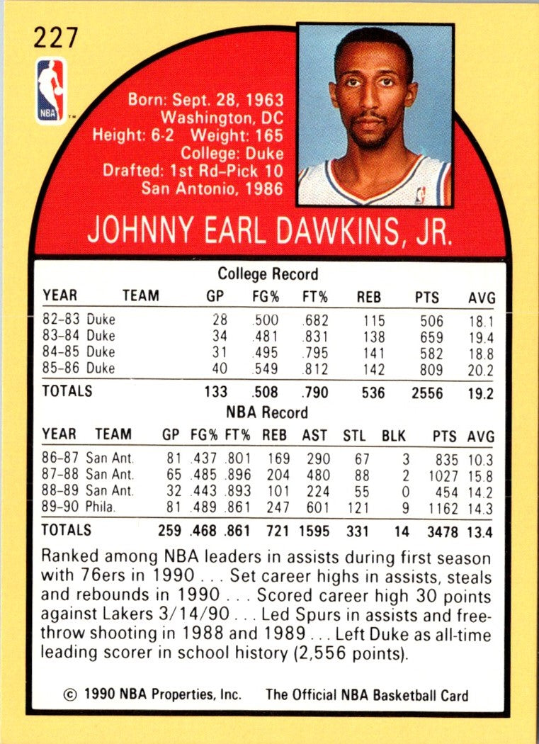 Description: 1990 Hoops Team Night Philadelphia 76ers Johnny Dawkins #NNO