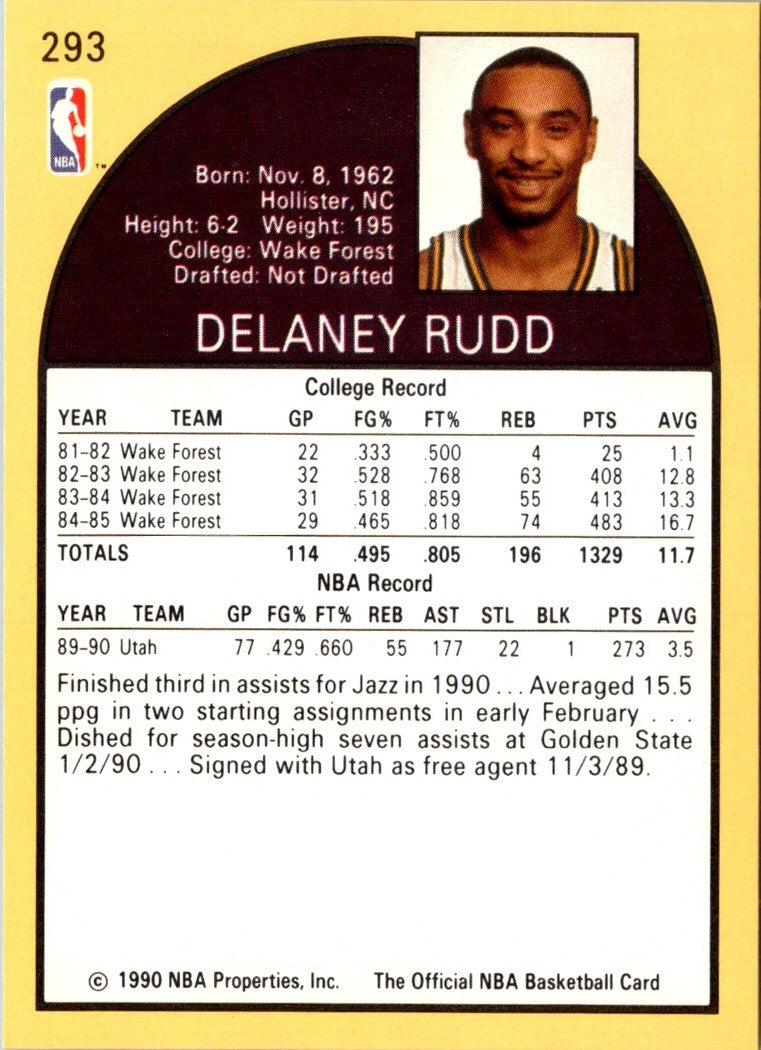 Description: 1990 Hoops Team Night Utah Jazz Delaney Rudd #NNO