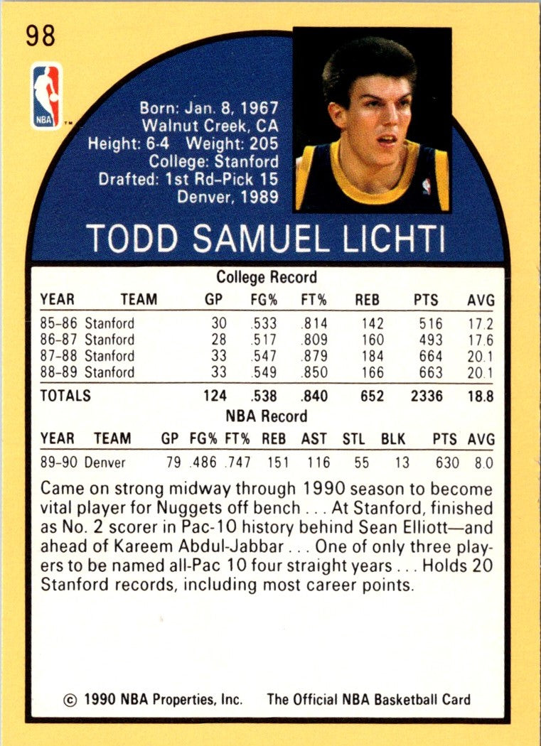 Description: 1990 Hoops Todd Lichti #98 Rookie