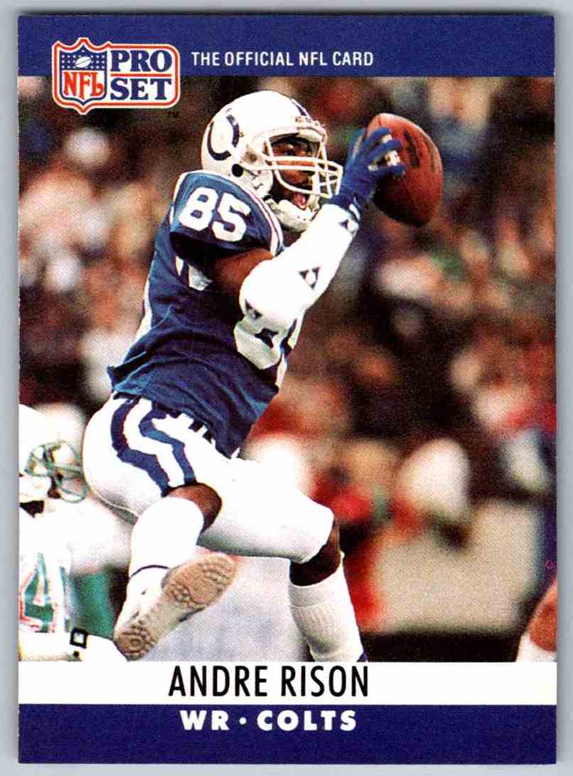 This 1990 Pro Set Andre Rison #134 Indianapolis Colts card is a must-have for any sports fan! Featuring an action shot of the Hall of Fame wide receiver in his prime, this card is sure to be a highlight of any collection. With bold and vibrant colors, this card is sure to stand out. Get your hands on this piece of NFL history today!