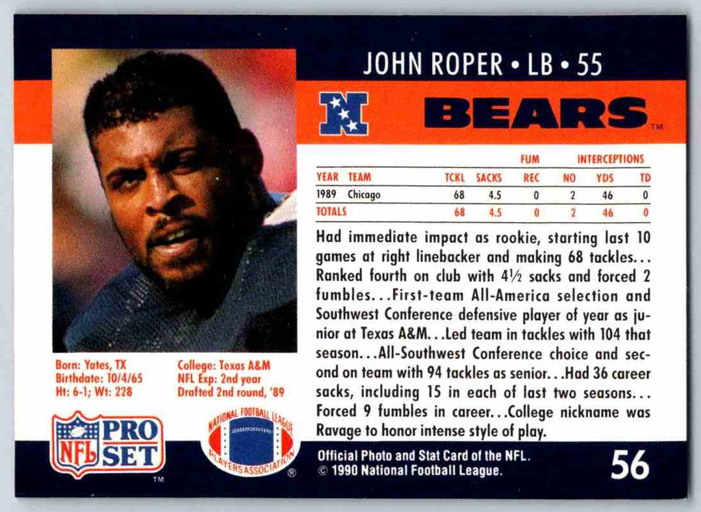 This 1990 Pro Set John Roper #56 card features a vibrant, full-color action shot of the former NFL star. Printed on high quality card stock, the card depicts Roper in all his glory and is sure to make a great addition to any sports fan's collection. With accurate stats and career highlights, this card is a must-have for any fan of the former running back. Collectors will love to add this piece of NFL history to their collection. Get your hands on this card before it's too late!