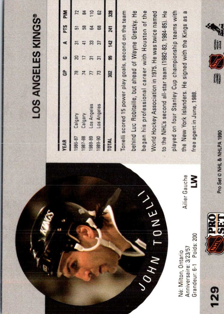 John Tonelli was an integral part of the Los Angeles Kings in the 1990s, and his Pro Set card is a great way to commemorate his career. The card features a full-color image of Tonelli in action on the ice, with bright colors that stand out against the crisp white background. The back of the card provides a detailed description of Tonelli's career achievements, along with his vital statistics and team affiliation. This classic card is a must-have for any Kings fan or hockey card collector.