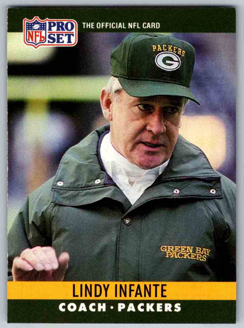 This 1990 Pro Set Lindy Infante card features the Hall of Fame coach in a classic Green Bay Packers uniform. The card is part of Pro Set's 1990 set and features a classic photo of Lindy Infante, along with his name, team and card number. Celebrate the legacy of one of the greatest coaches in NFL history with this Lindy Infante card! Add it to your collection today and remember the great accomplishments of the Green Bay Packers during Infante's tenure.