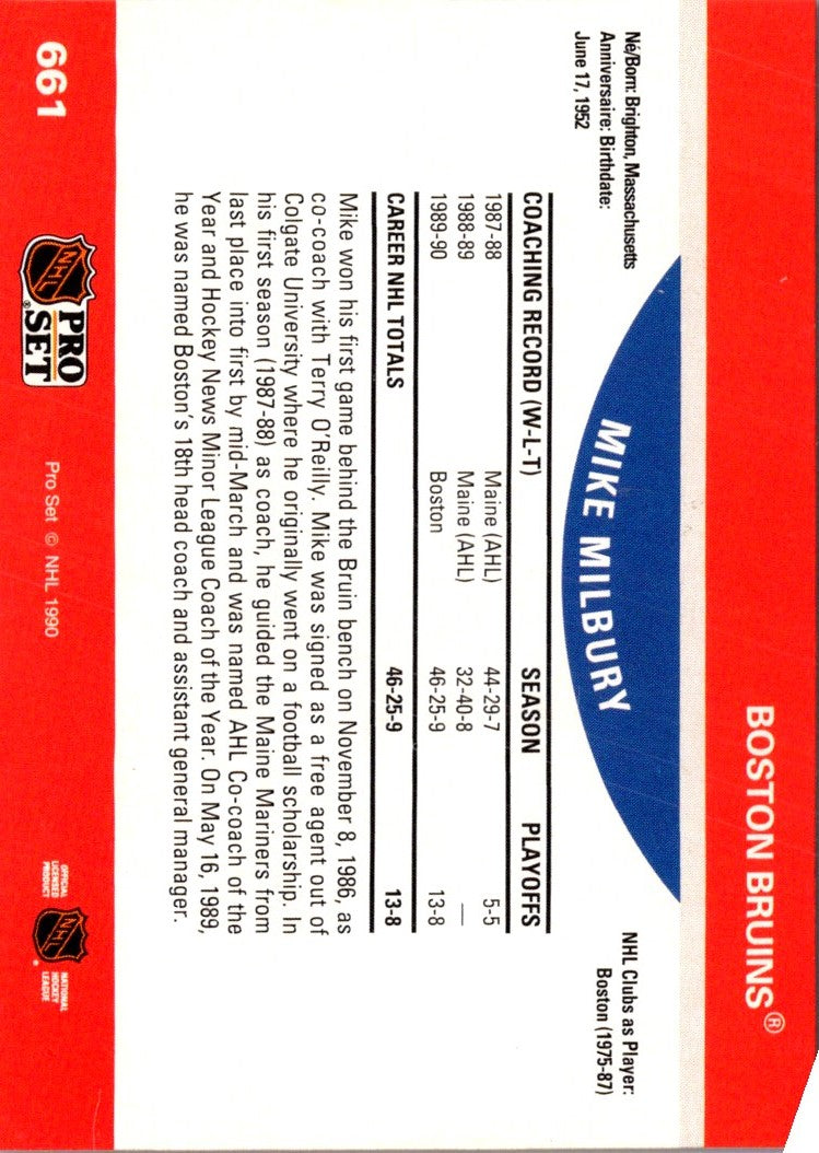 This 1990 Pro Set Mike Milbury #661 Boston Bruins card is a must-have for any Bruins fan. The card features a full-color photo of the legendary defenseman and a detailed biography on the back. The card is in excellent condition and is a great addition to any collection. It is an affordable way to show your Bruins pride and honor the accomplishments of this great player.