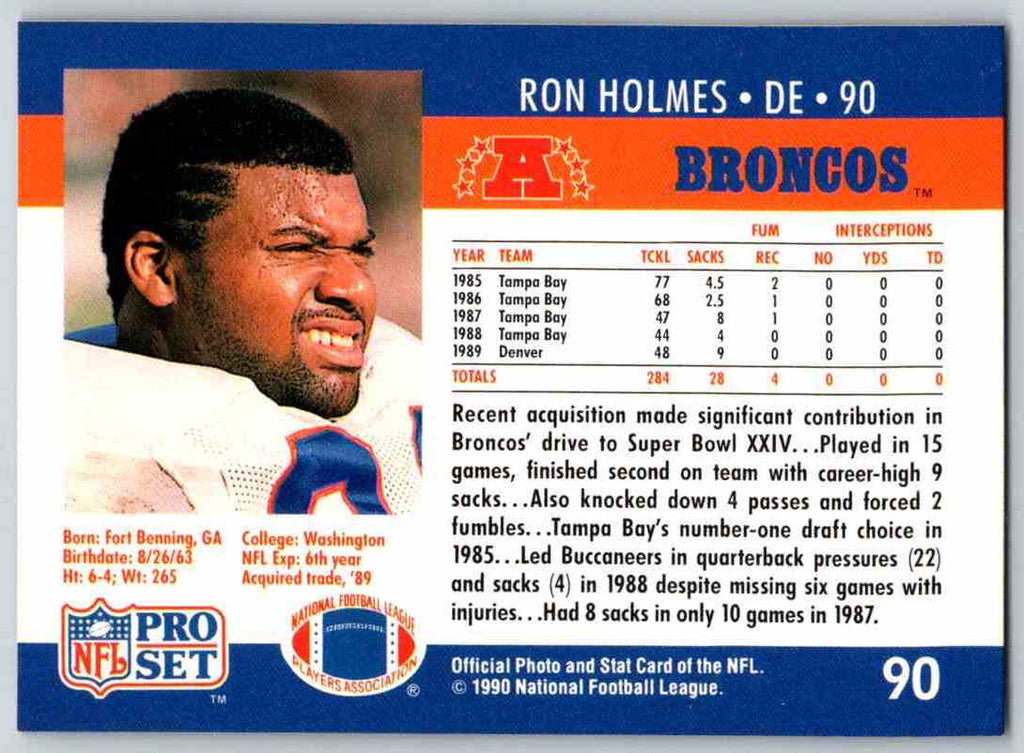 This 1990 Pro Set Ron Holmes #90Denver Broncos card is a must-have for any NFL fan. Featuring the star defensive lineman in full uniform, the card captures a moment in time from his career. The card is in great condition and the colors are still vibrant. The back of the card contains a brief biography of Holmes and his career stats. With this card, you can add a piece of NFL history to your collection.