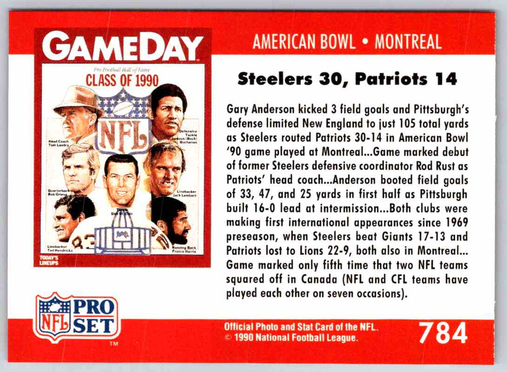 The 1990 Proset American Bowl: Montreal #784 card is an eye-catching collectible perfect for any football fan. Featuring a full-color image of the Montreal Alouettes team in action at Olympic Stadium, this is a great way to commemorate a legendary moment in Canadian football history. With a glossy finish and sharp detail, this card is sure to become a treasured item in any collection. Get your hands on this special piece of sports memorabilia today!