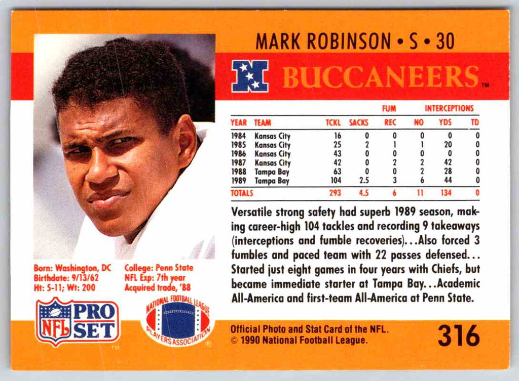 This 1990 Proset Mark Robinson #316 card is an absolute must-have for any sports memorabilia collector. Featuring vivid, full-color graphics and a glossy finish, this card will be the envy of all of your friends. With its strong cardboard backing, this card will hold up for years to come. A perfect addition to any collection, this card is sure to be a hit. Don't miss out on this amazing opportunity to own a piece of sports history!