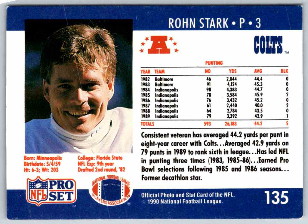 This 1990 Proset Rohn Stark #135 card is a must-have for any collector. Featuring a beautiful black and white image of Rohn Stark against a stark white background, this card is perfect for any fan of the NFL. Stark was a star defensive lineman who played for the San Francisco 49ers from 1989-1993, and he was known for his hard-hitting style of play. This card is sure to be a great addition to any collection. It's a perfect way to remember the great Rohn Stark and his incredible career.
