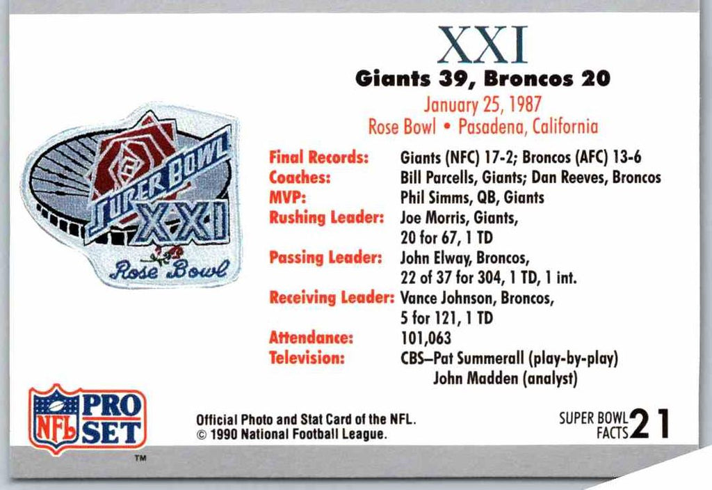 1990 Proset Super Bowl XXI #21