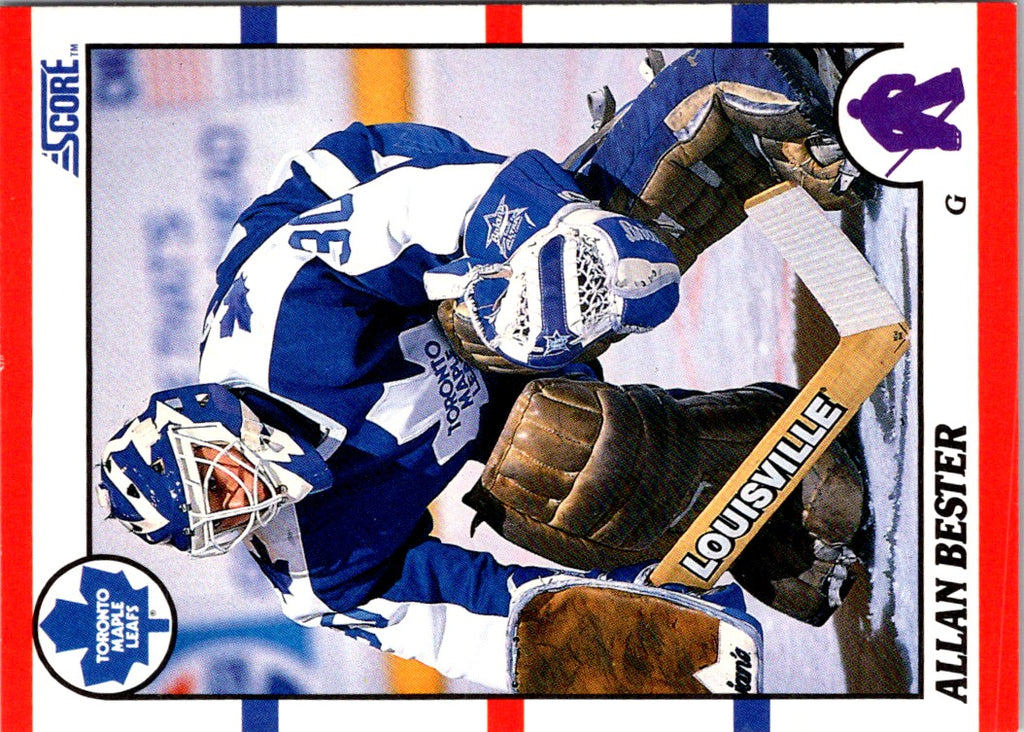 The 1990 Score Allan Bester #27 Toronto Maple Leafs card is a must-have for any hockey fan! This card is in mint condition and features the Maple Leafs' goalie in full uniform. The card is glossy and features an action shot of Bester in the game. It's a great way to show off your Maple Leafs pride and commemorate an all-time great. Add this card to your collection and show off your hockey fandom!