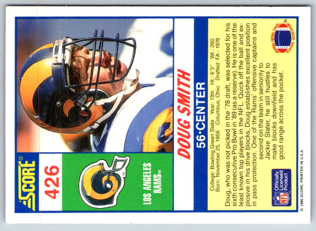 Doug Smith was a terrific running back for the Los Angeles Rams in the 1990s. This 1990 Score card features a great action shot of Smith in his Rams uniform. The vibrant colors and crisp details of the card make it a must-have for any Rams fan. This card is the perfect addition to your collection and a great way to celebrate the career of a true Rams legend.