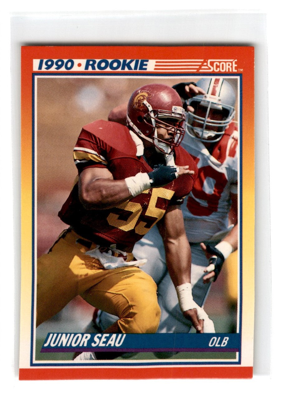 Score Junior Seau #302USC Trojans is the perfect way to show your support for the legendary linebacker. The card is the perfect way to commemorate Seau's successful time with the USC Trojans, and the card features a vibrant image of Seau in his USC Trojans uniform. The card is printed on durable card stock and is sure to be a treasured addition to any fan's collection. Get your hands on this card and pay tribute to one of the greatest linebackers to ever play the game.