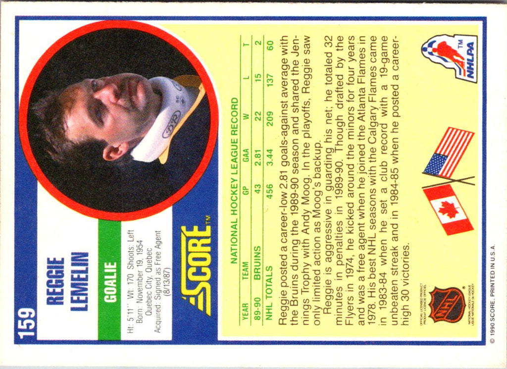Description: 1990 Score Reggie Lemelin #159