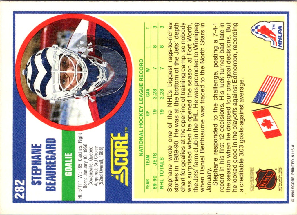 Description: 1990 Score Stephane Beauregard #282 Rookie